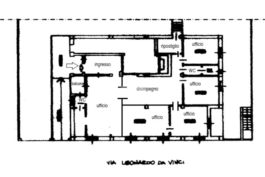 L’immobile si presenta su un unico piano con 5 aree adibite ad ufficio, due servizi igienici, impianto di riscaldamento e impianto di climatizzazione, oltre alla presenza di un balconcino e un ripostiglio. La soluzione risulta essere molto luminosa grazie alla tripla esposizione e alla presenza di molteplici punti luce.
