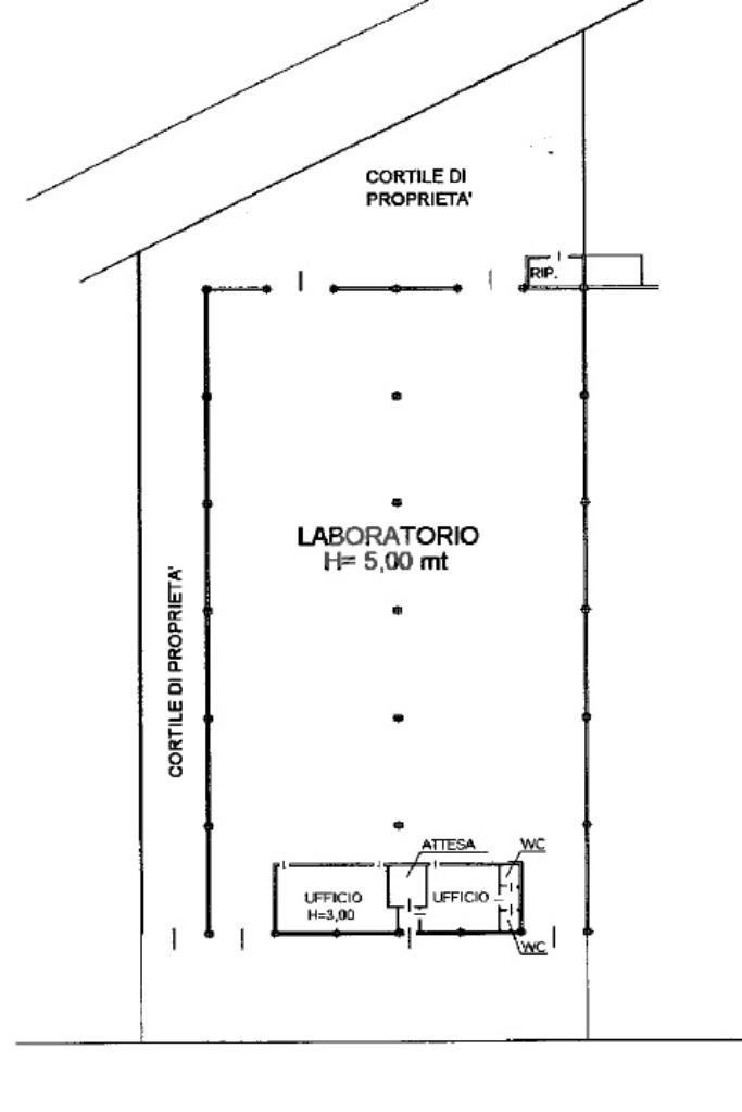 L’immobile si presenta in buono stato, dotato di servizio igienico, ufficio e un cortile di 250mq.