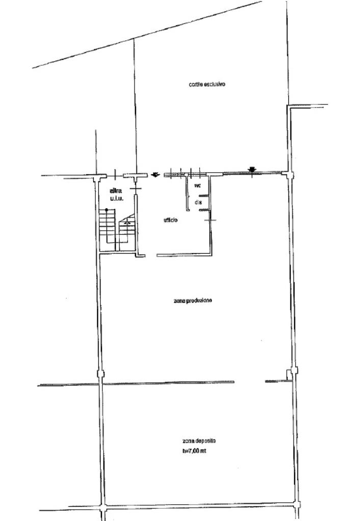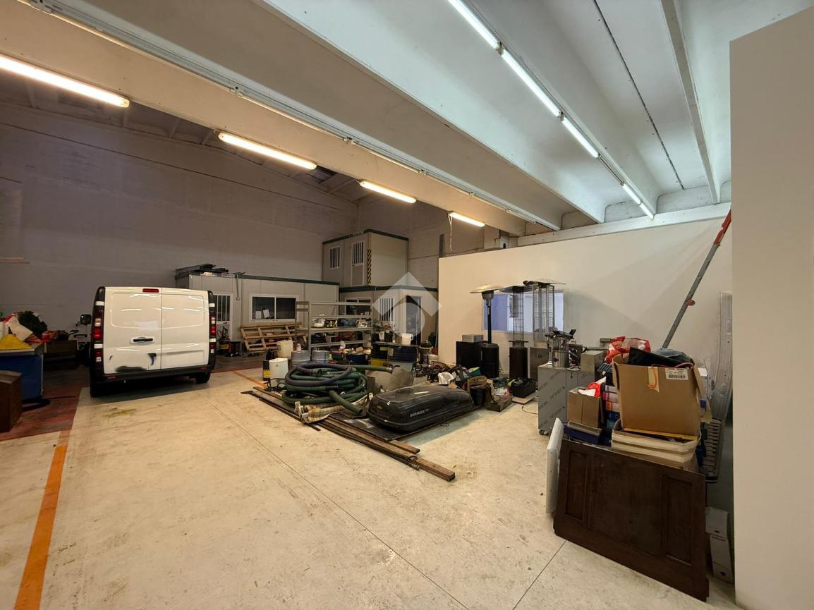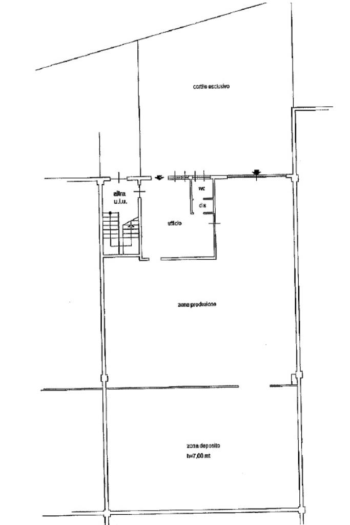 Al piano terra troviamo il capannone di 380mq in buono stato con uffici di recente costruzione, oltre un cortile, comodo per carico/scarico di piccoli furgoni.