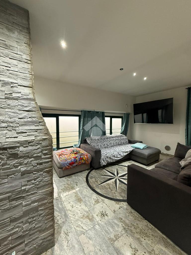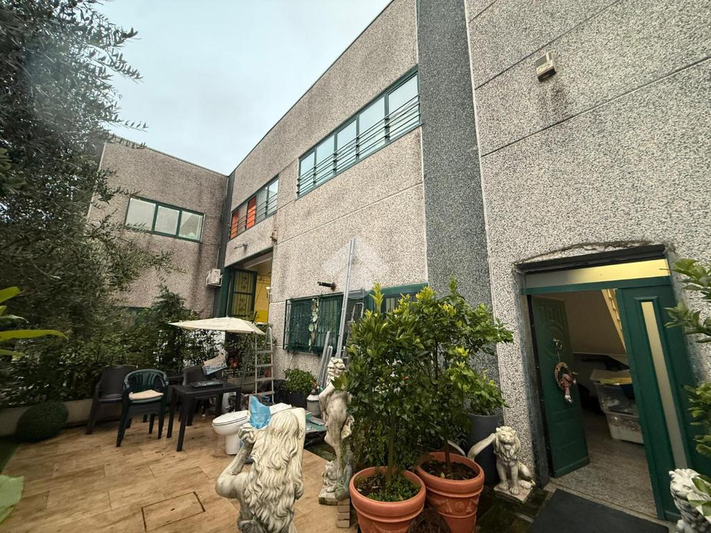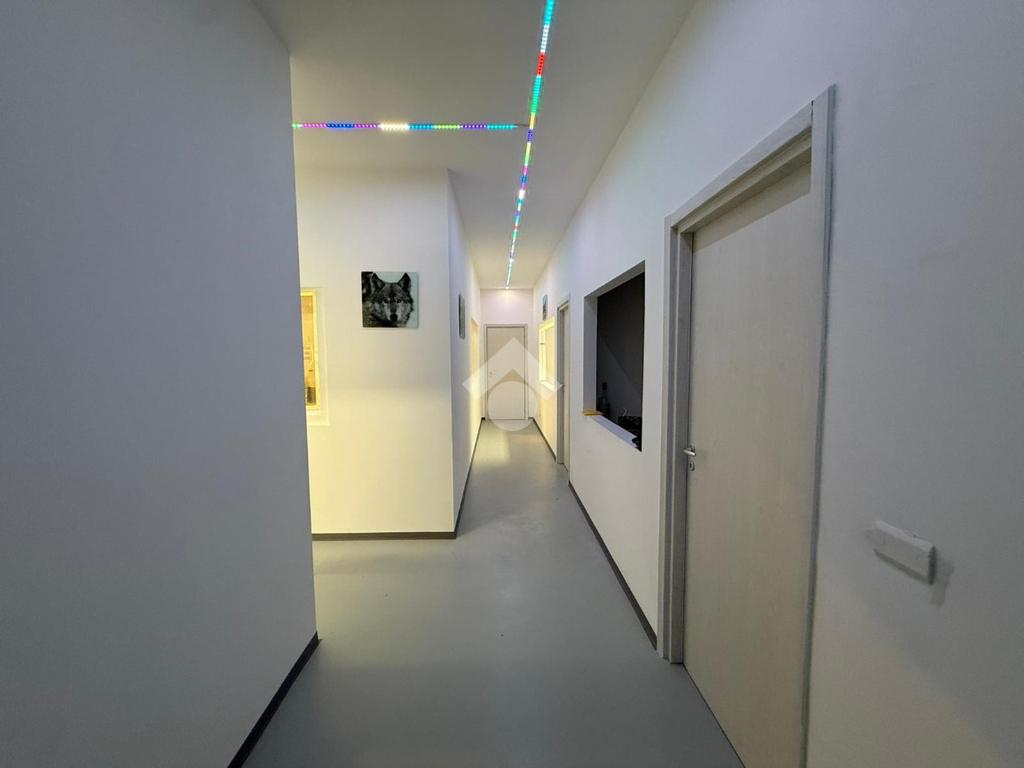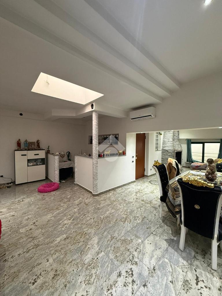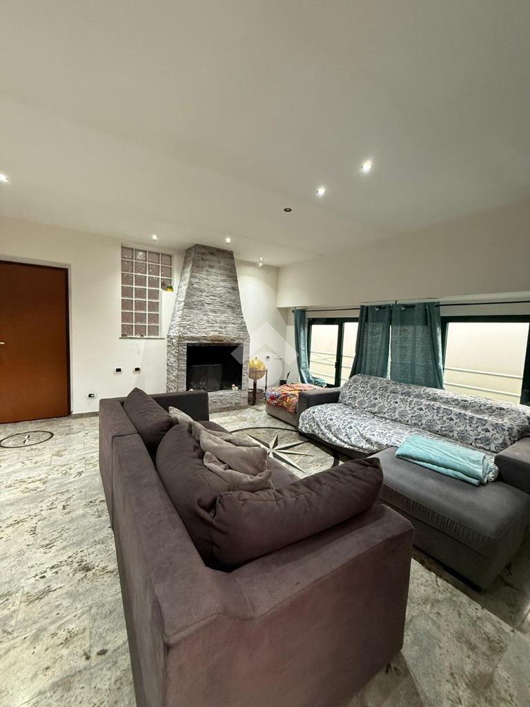 Al piano superiore troviamo un appartamento così composto: sala da pranzo, soggiorno, cucina abitabile, tre camere da letto e due bagni; venduto arredato. Ulteriore plus è la presenza di un terrazzo. L’ingresso all’appartamento è separato dal capannone.