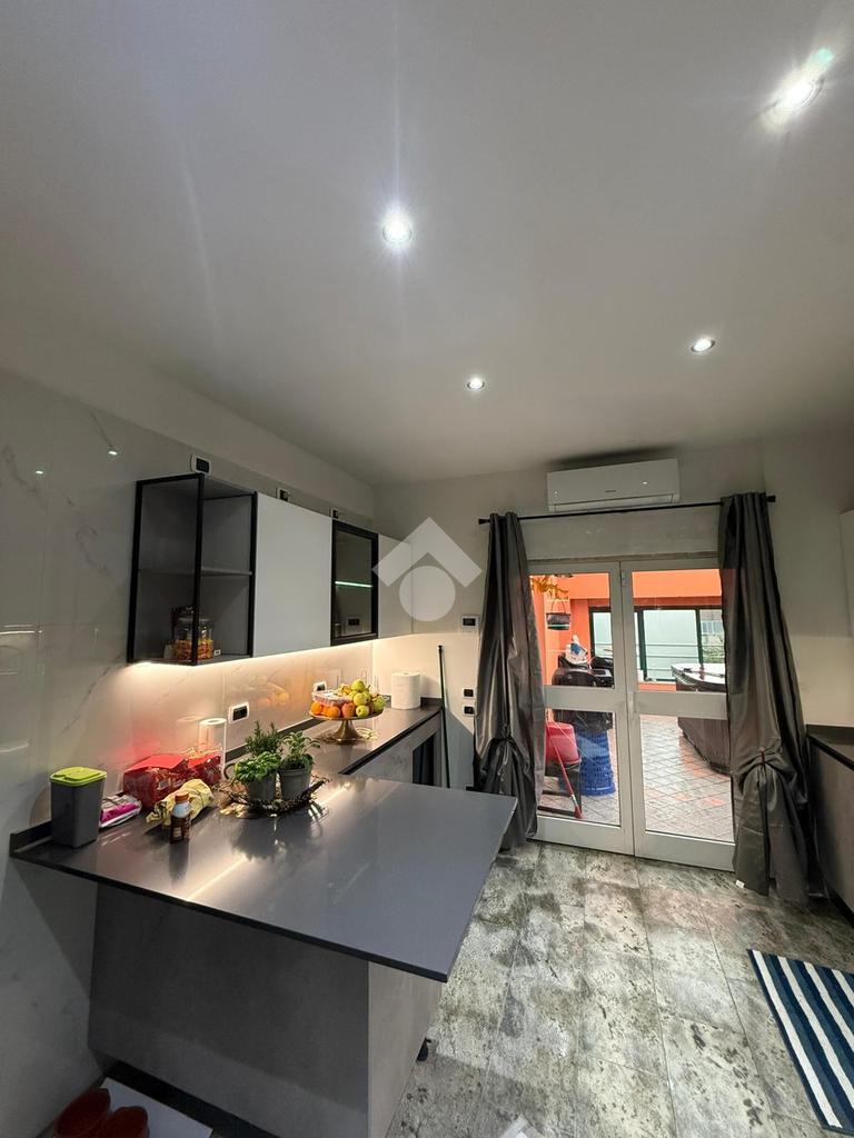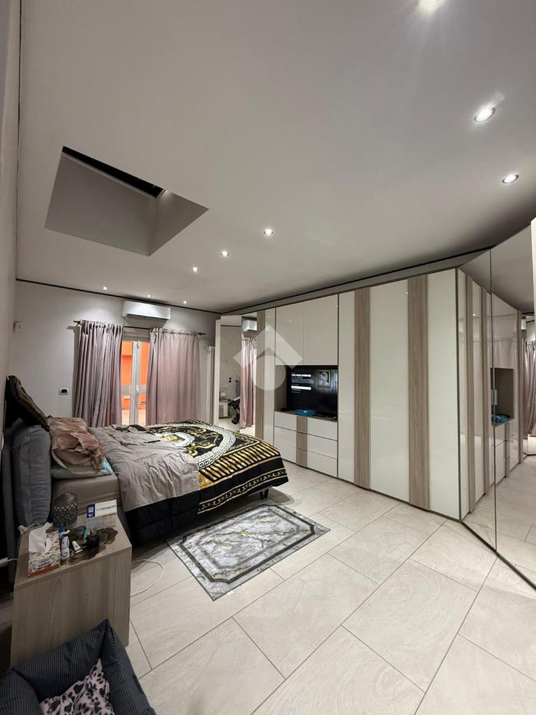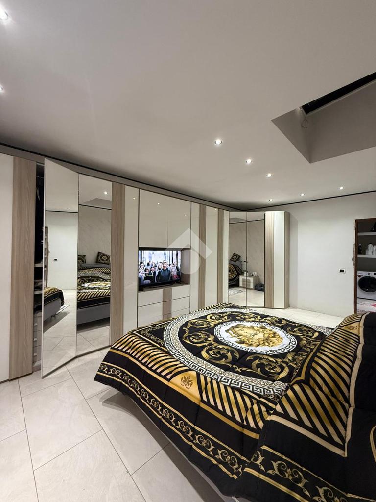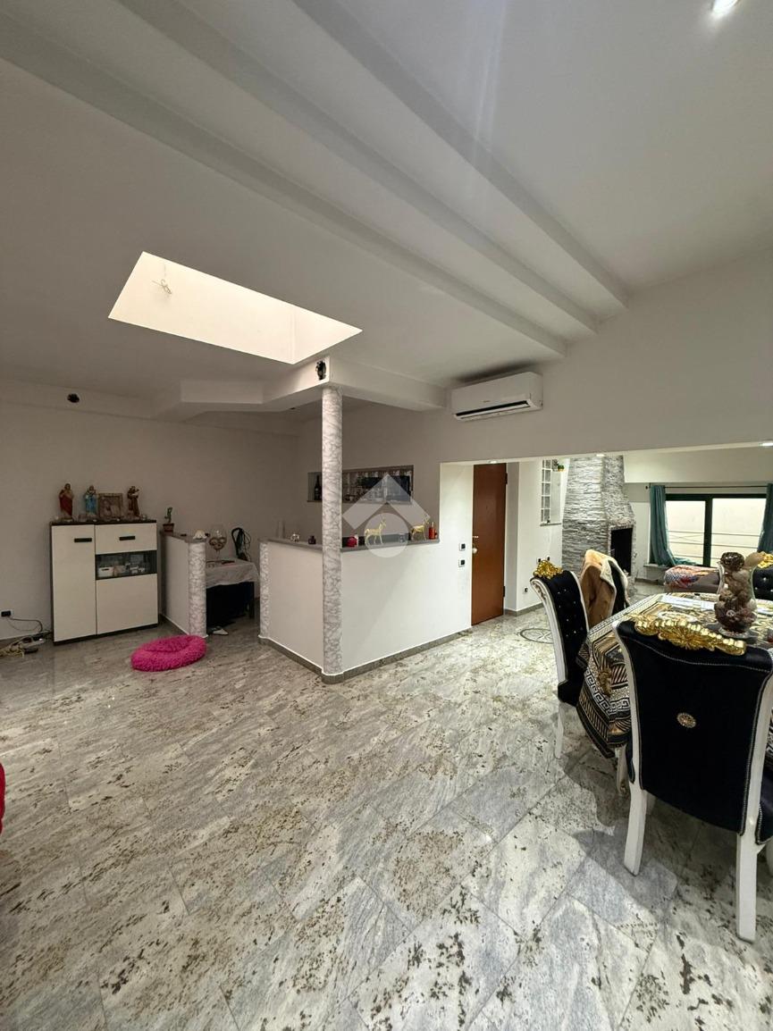 Al piano superiore troviamo un appartamento così composto: sala da pranzo, soggiorno, cucina abitabile, tre camere da letto e due bagni; venduto arredato. Ulteriore plus è la presenza di un terrazzo. L’ingresso all’appartamento è separato dal capannone.